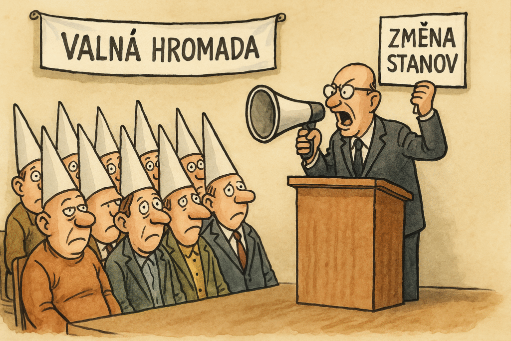 Jak jsem tak projížděl náměstím okolo kostela, vzpomněl jsem si na pohádku o tom, jak v Kocourkově na střeše radnice vyrostla tráva a zdejší konšelé si s ní nevěděli rady. Protože v jejich pohádkové městské radě seděli samí chytráci, zvítězil návrh řešení, který spočíval v tom, že na střechu vytáhnou vola (myslím tím vykastrovaného sudokopytníka) a ten tu trávu spase. A tento úsměvný příběh o lidské hlouposti vládnoucí skupiny se mi spojil právě se situací v ČTS a připravovanou Valnou hromadou. On totiž navrhovaný program Valné hromady obsahuje bod 3, kde bude přečtena Důvodová zpráva ke změně stanov a následně by tyto Stanovy měly být změněny. Ale zajímavé je, že až bod 8 je Zpráva o činnosti ČTS a jeho hospodaření za rok 2024.